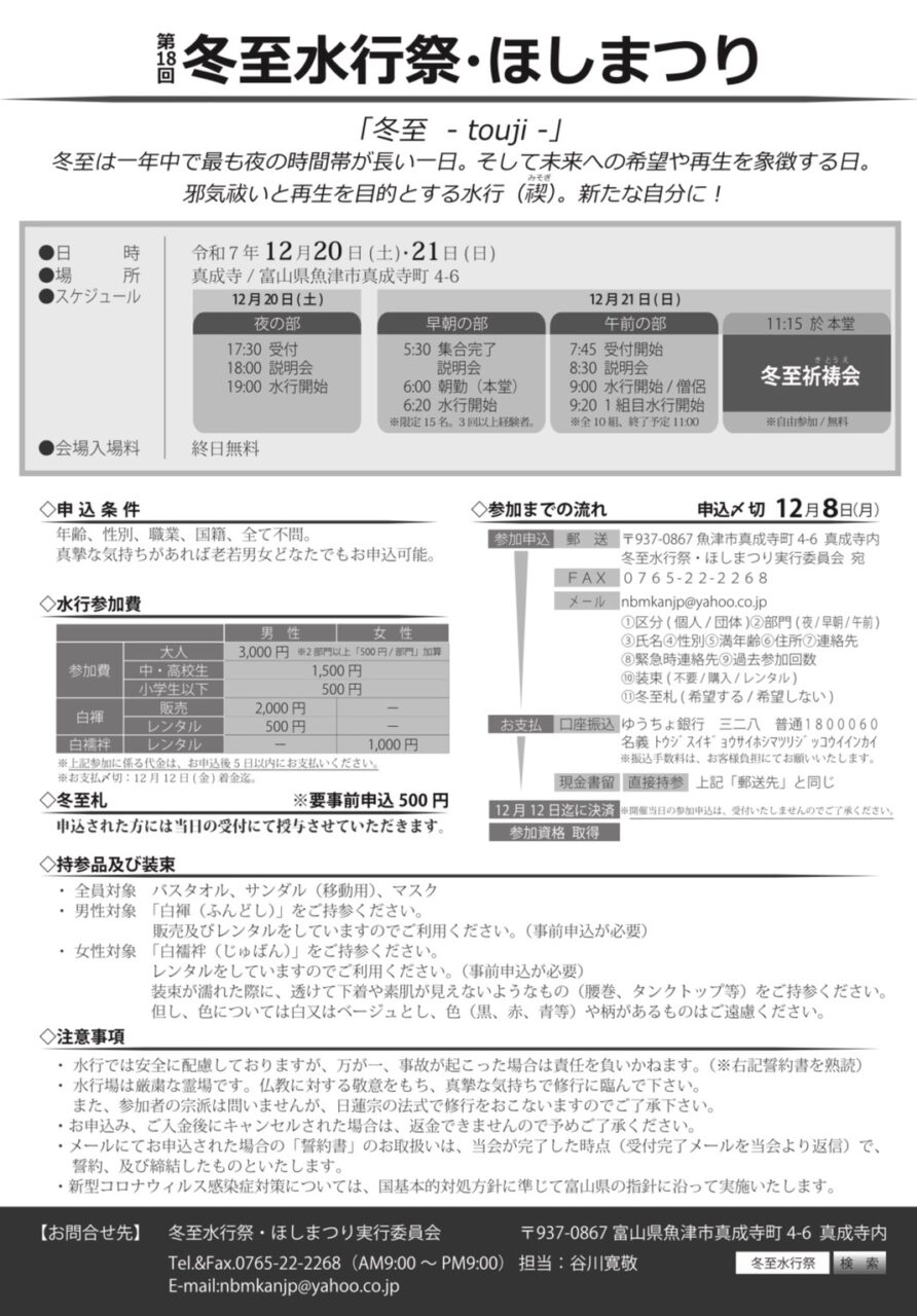 第18回 冬至水行祭・ほしまつり 参加者募集開始!!