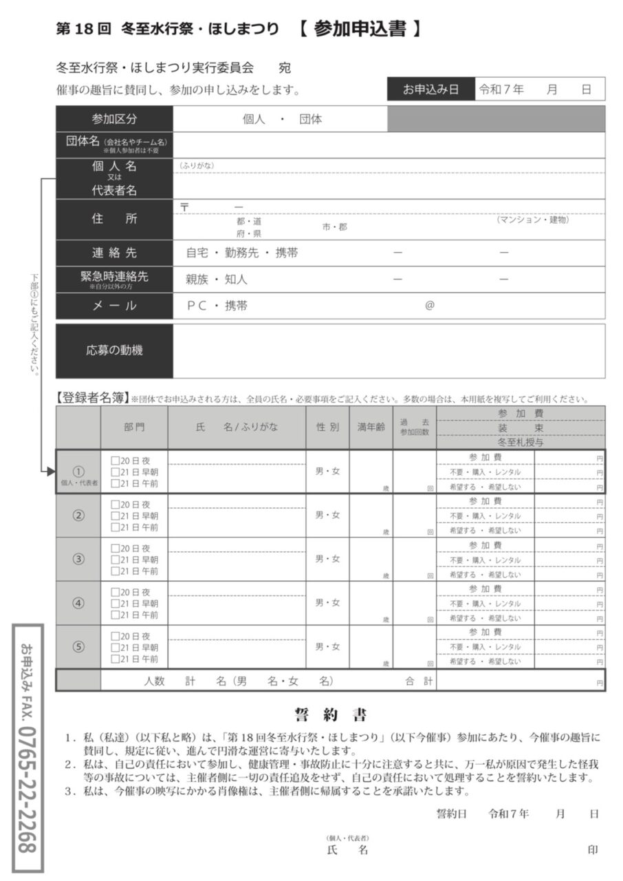 第18回 冬至水行祭・ほしまつり 参加者募集開始!!